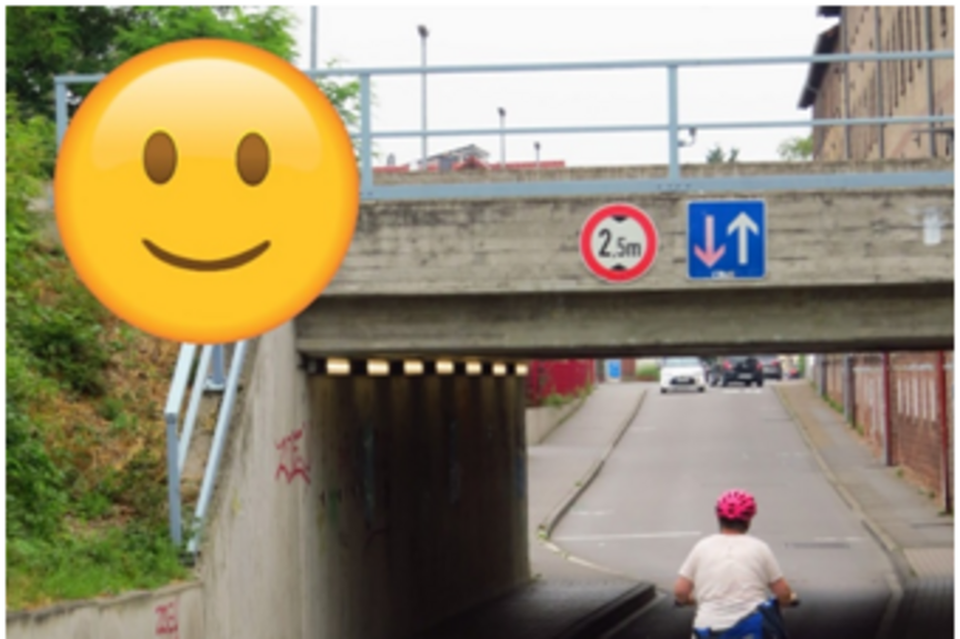 Sehr angenehm gestaltet sich das Radfahren von der B3 unter der Bahnlinie hindurch, schließlich haben Radelnde hier Vorfahrt. Allerdings scheint das nicht allen Autofahrenden klar zu sein, oft werden Räder hier bedrängt. „Das ist aber in letzter Zeit besser geworden“, stellen Elisabeth Kramer und Hans Stephan vom ADFC fest, die die Gruppe führen. Als sinnvoll empfunden wurden hier die neu aufgemalten Radsymbole auf der Fahrbahn, die deutlich signalisieren: Fahrräder dürfen hier fahren.